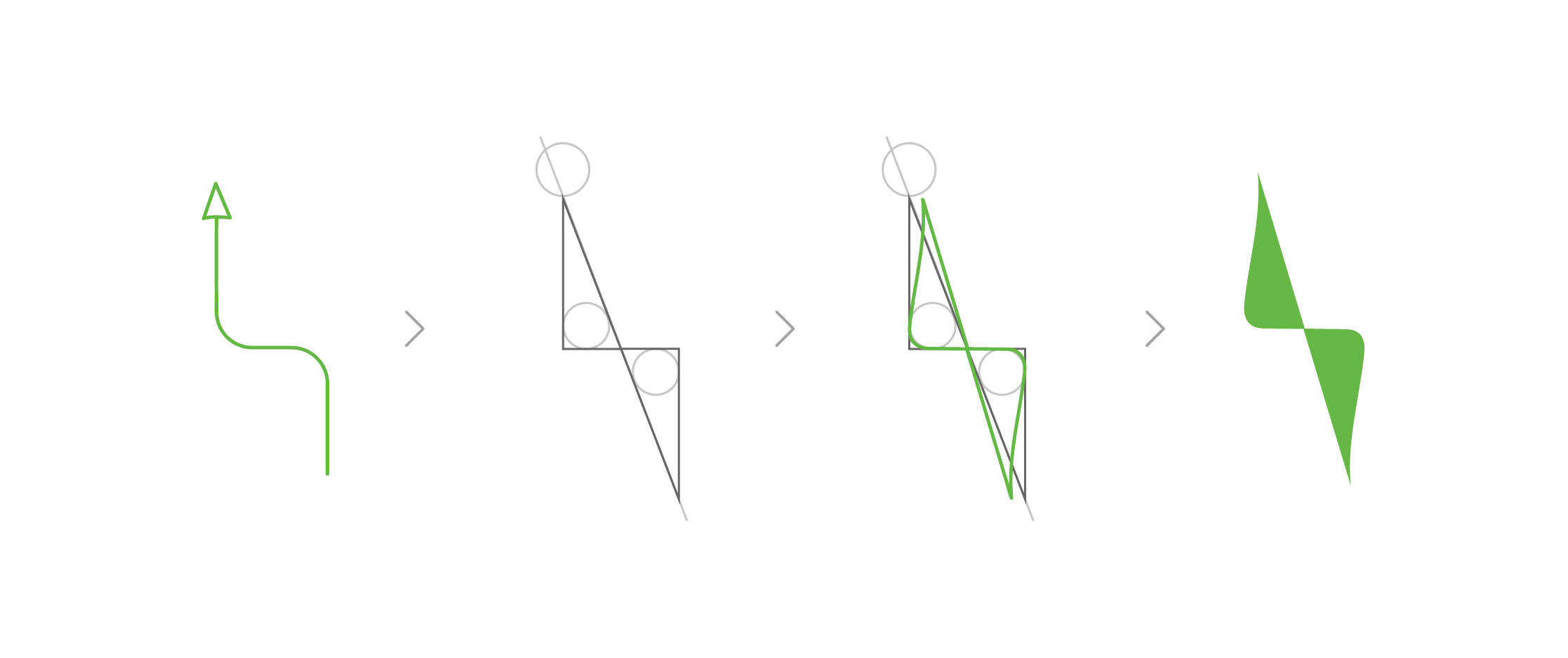Logo mark exploration inspired by an arrow and a chair—representing a person sitting upright. Curves and softness were added to balance precision with approachability.